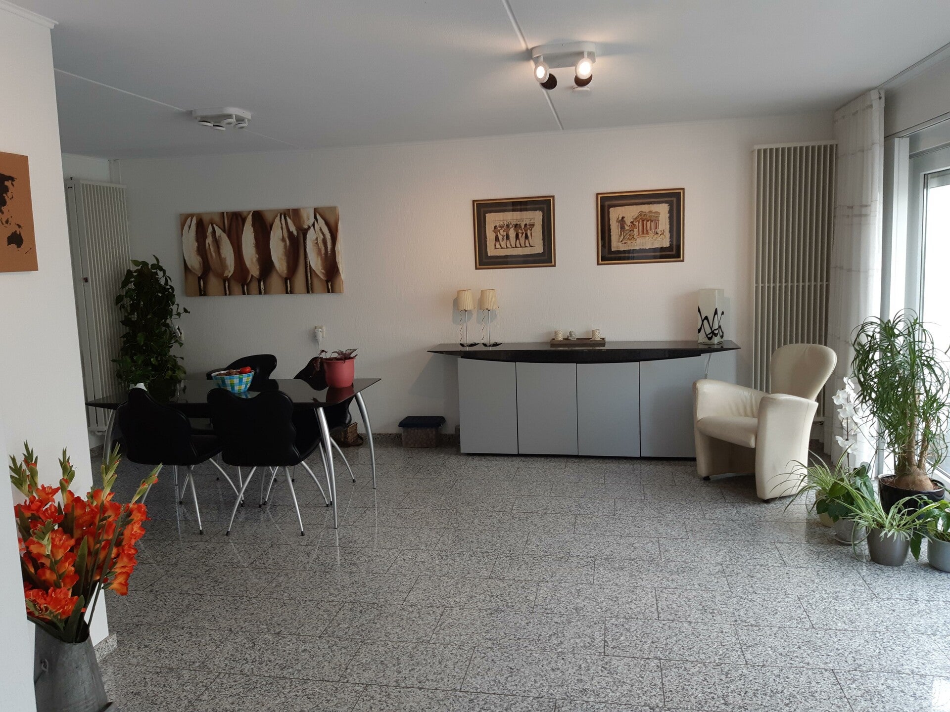 Royale L-vormige woonkamer, voorzien van granieten vloer, met airco en schuifpui,